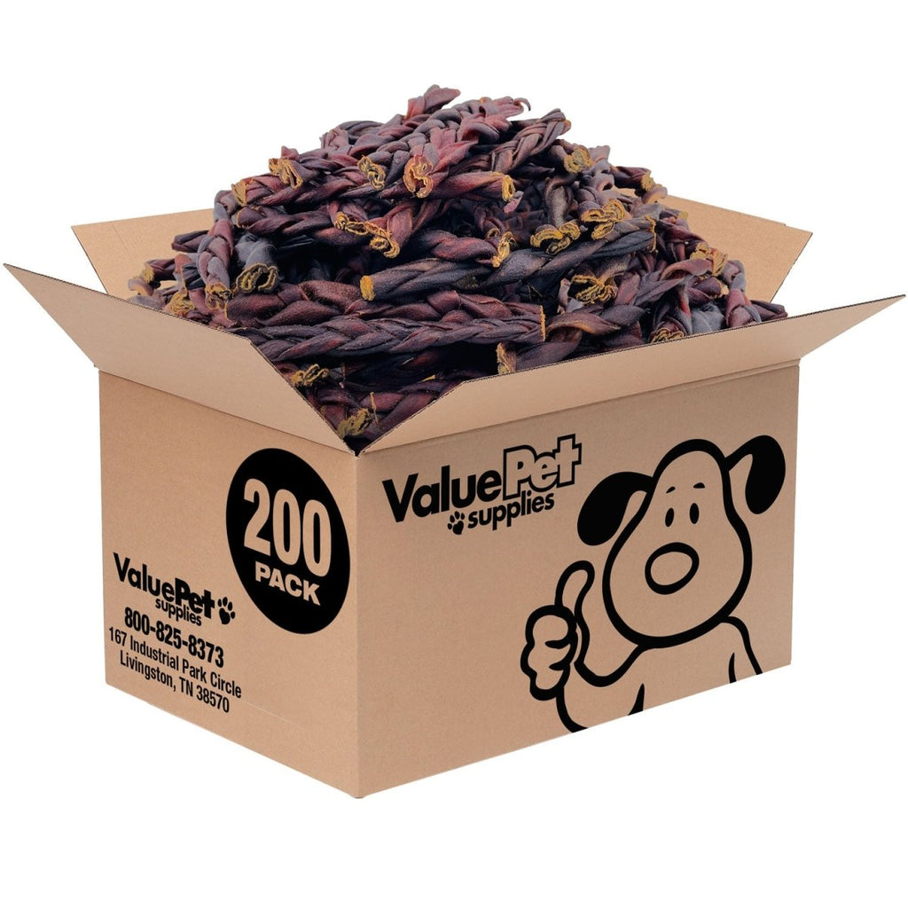 Explore the excellence of ValueBull 5-6 Inch Thin Beef Collagen Braids, a genuine treat for your canine companion. Crafted from a single sheet of the inner, collagen-rich layer of beef skin, known as corium, these braids deliver holistic benefits to your beloved pup.