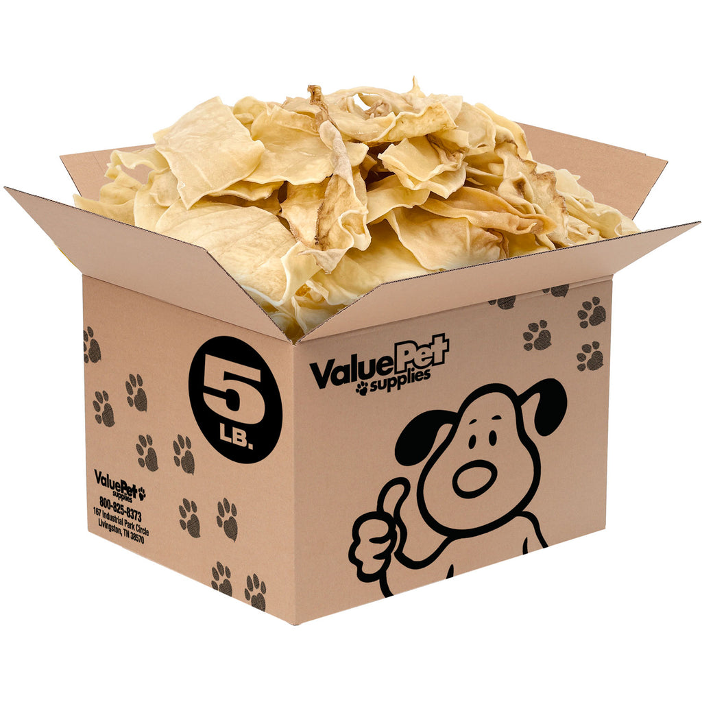 ValueBull USA Natural Flavored Beef Collagen Chips are made from a single sheet of corium, the inner layer of beef skin rich in collagen. Collagen helps your dog in many ways: it cleans their teeth and strengthens their jaw muscles, it rebuilds and repairs their muscles, it reduces inflammation, it supports their bones and joints, and it improves their skin and coat. These treats are long-lasting, basted in beefy broth, and highly digestible. We hand inspect all-natural treats for quality and consistency; some natural variation is to be expected. Quantity is estimated based on average weight.