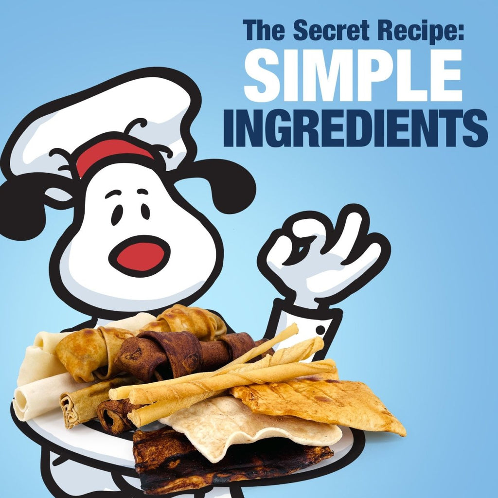 - 100% Natural Rawhide - Single ingredient natural dog chews are made from USA sourced beef hide with no added chemicals or fillers - Natural color and size variation will occur